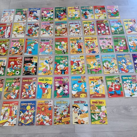 En nærmest komplett samling Donald Duck tegneserieblader fra 1988. Bladene er veldig fine. Ingen er skrevet i. De fleste bladene inneholder ekstratingene som følger med bladet. Det er kryssord i alle blad (kun nr. 52 er fylt ut)