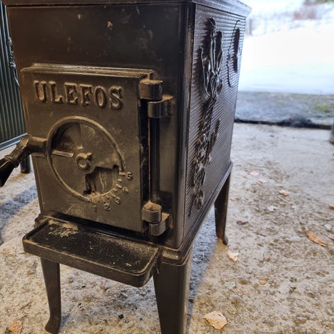 Denne vedovnen har vært benyttet på hytta i mange år.
