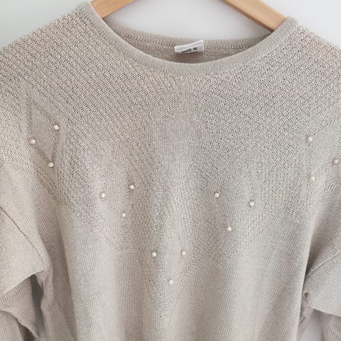 Beige mønsterstrikka genser. Miss Sparks. Retro