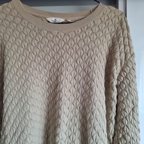 Mønsterstrikka beige genser fra Miss Sparks, England.
