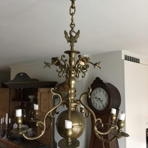 Lampen er i original stand. Høyde 80 cm. Diameter 40 cm.