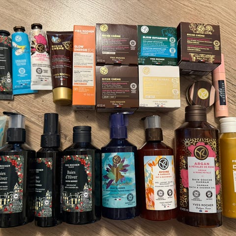 Div hudpleie i små pakker/prøveprodukter.