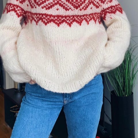Strikket i Dale alpakka med Tynn Silk mohair følgetråd.