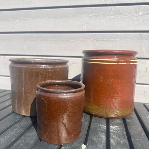 2 stk tunge keramikk krukker selges samlet. Begge er hele og pene, ingen sprekker. Ingen kvittering