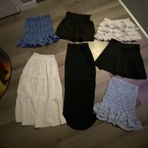 4 skjørt og 2 shorts (de to hvite)