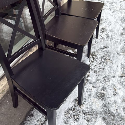 To stk pent brukt INGOLF stoler. Ene stolen er limt i krysset på ryggen. Fungerer slik den skal. Ellers pene stoler.