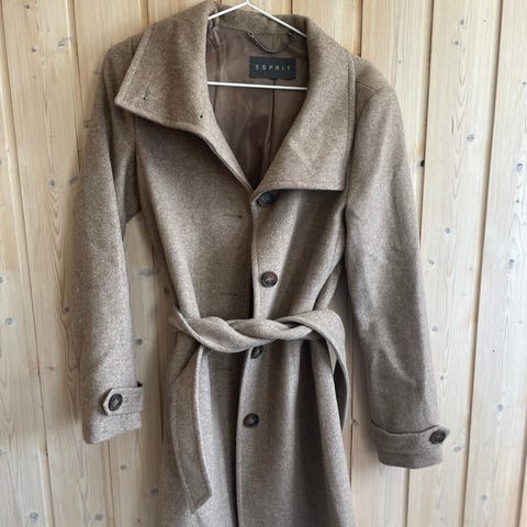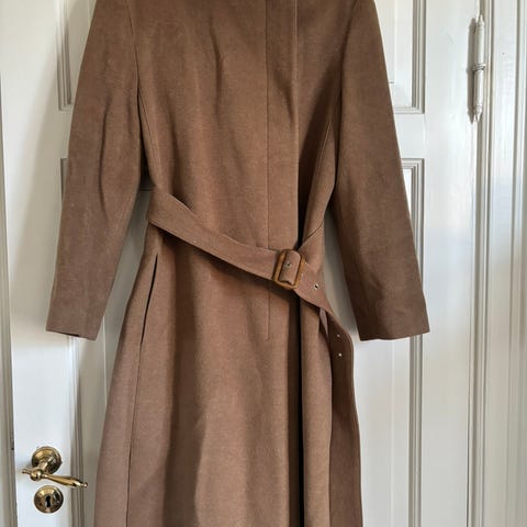 Ny 2/3 lang kåpe/jakke/frakk til dame i utmerket kvalitet. Brukt to ganger men kjøpt for stor til meg som vanligvis bruker xl. Denne er størrelse xxl. Varm og god kåpe. Når til over kneet. Camel farge.