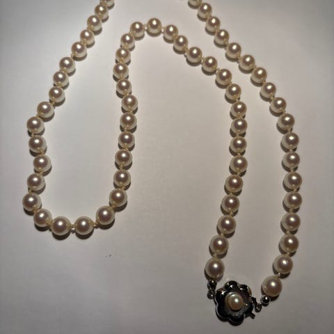 Ekte Hvit perlekjede til salgs. Takstert til kr. 10800,- 18/9-2019 Taksbrev kan fremvises om ønskelig.