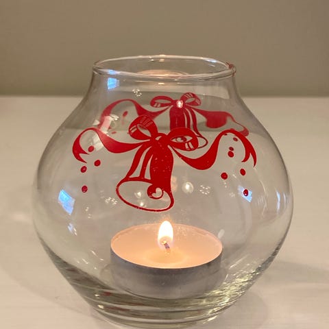 Jeg har 4 fine glass til te-lys, veldig koselig i desember-tiden.