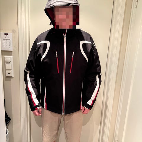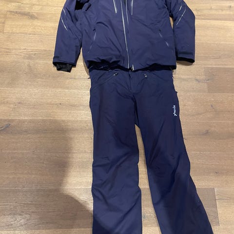 Jakke størrelse XL, bukse størrelse L.