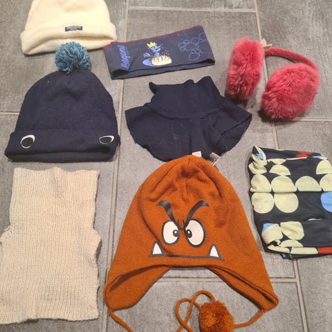 A. Stripete (rosa/rød) ull-lue med reflekskant.