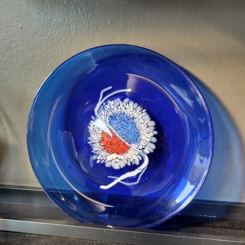 Fint gult kunstglassfat 20x30 cm, skadefritt