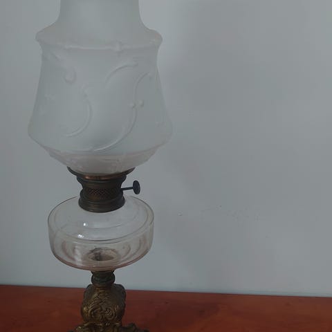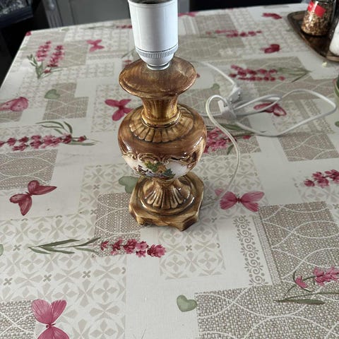 Sjelden tysk lampefot med religøst motiv. Merket D.1943 Selges for kr 500
