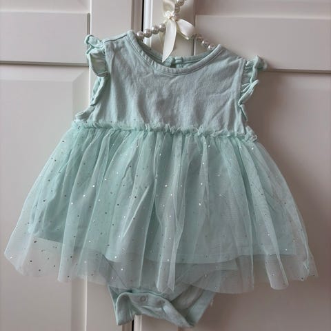 Kjempefin kjole med tyll i en klar dus blåfarge i strl 2-4år