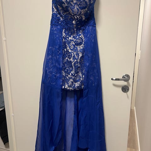 Selger en lite brukt kjole/ballkjole fra Coya i størrelsen XL. Kun brukt en gang i bryllup for en stund tilbake. Følger med blått silkeskjal.