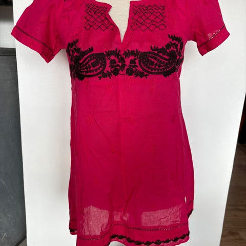 Helt ubrukt rød dametopp / t-skjorte selges til halv pris. Prislapp henger på. Hvitt broderi brystparti på framsiden, ingenting på baksiden.