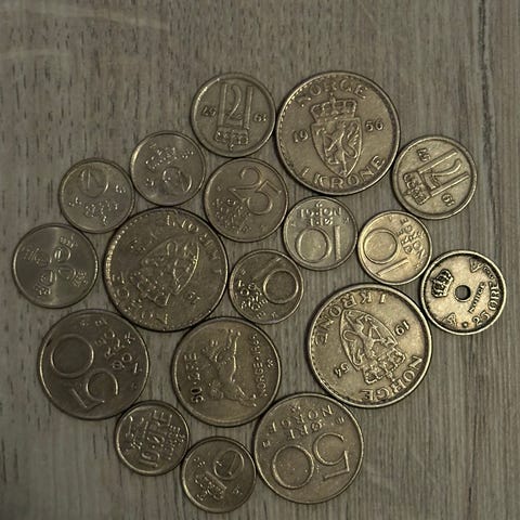 38 forskjellige mynter fra Norge. Alle er i god stand.