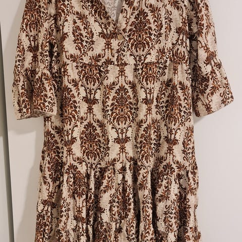 Info: Ny/ubrukt kjole, med tags fortsatt på. Nypris 200,-kr. Modellen selges ikke lenger på nettsiden. Supersøt utforming foran med knyting, og andre detaljer. Pm ved spørsmål. Veldig fin kjole som jeg gjerne skulle beholdt selv, hadde det ikke vært for plassmangel😅
