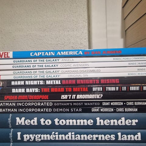 Selger noen graphic novels eller comic books fra DC og Marvel.
