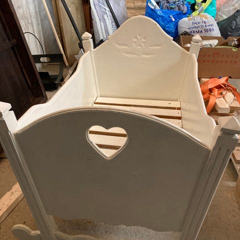 Selger brukt ubehandlet vugge med utskjæringer