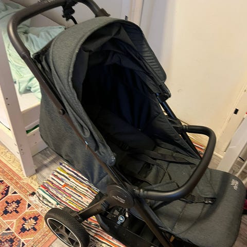 Selger en meget pent brukt barnevogn med tilhørende bilstol og sittedel.