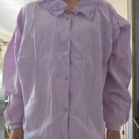 Grå nydelig bluse til å slenge over seg. Veldig lett, nesten litt gjennomsiktig.