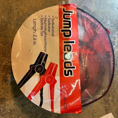 Pent brukte startkabler.