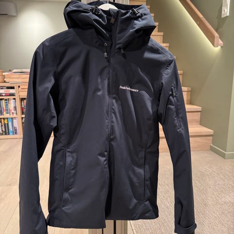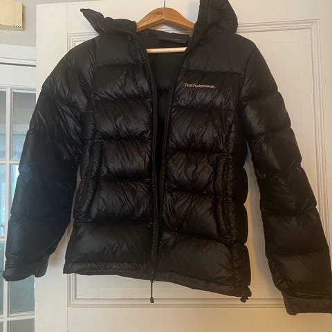 Peak Performance Vinterjakke i størrelse XS for dame. Jakken er blå og designet for vinterbruk, med isolerende materiale som gir varme og komfort under kalde forhold.