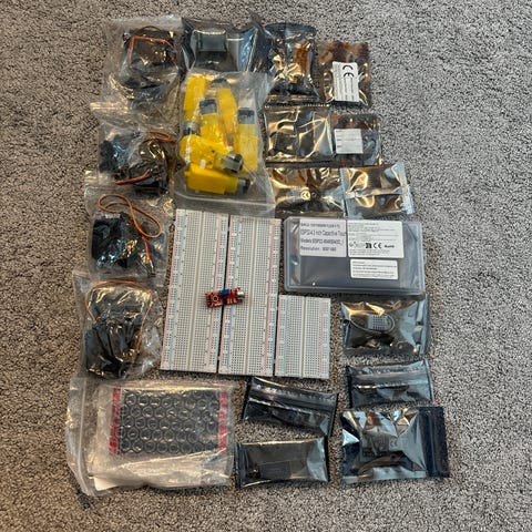 Jeg selger denne gamle bil banen. Bygget den sammen her om dagen. Alle delene er der, men det er noe problemer med koblinger i fjernkontroller/ledninger og kontakten i banen. Bilene kan kjøre bra på noen punkter og dårlig andre steder. Sikkert en quick fix for noen som kan det.
