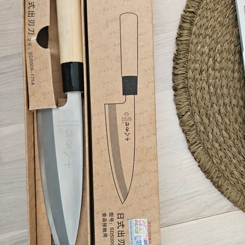 Selger en japansk DEBA-kniv, designet for presis filetering av fisk og håndtering av mindre bein.