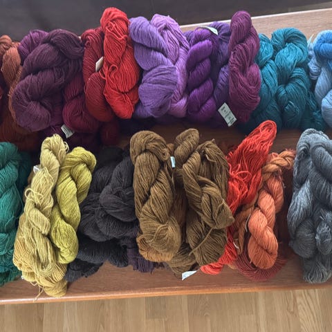 Masse nydelig plantefarget garn, både ull og lin. Etter kyndig dame i Gudbrandsdalen. Noe av garnet har info om beising og plante brukt. Ulike størrelser på hespene. Vekt tilsammen (både ull/lin) på det fargede garnet er ca 1280 gr, tykt ullgarn 220, lingarn/ ryegarn (?) 1060 gr. Det ufargede er ca 800 gr. Ta kontakt om det er av interesse eller om du har spørsmål, så skal jeg svare så godt jeg kan. Kan selges under ett, gi da et rimelig bud. Kan også selges etter farge/type materiale. Sender gjerne.