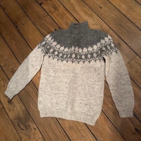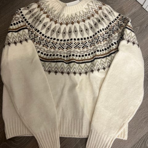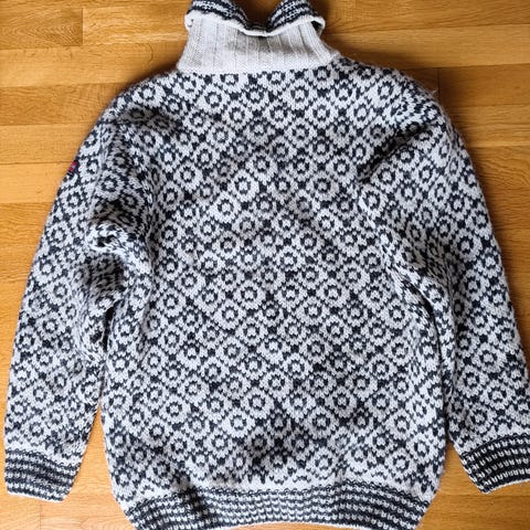Genseren er strikket i herre størrelse S. Veldig myk og god, klør ikke.
