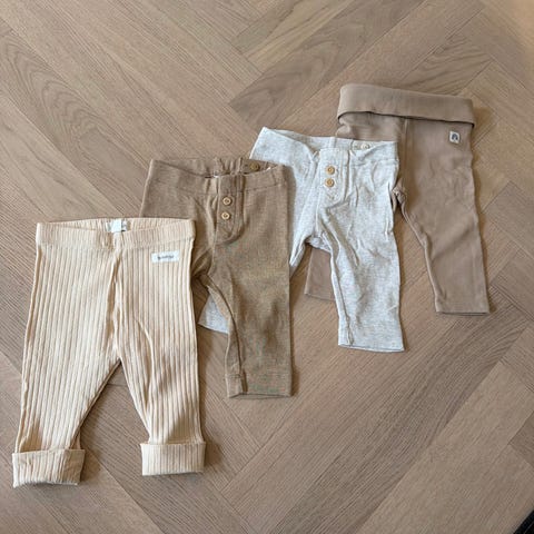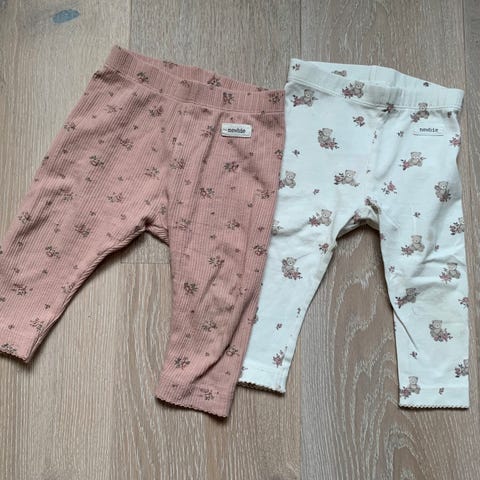 Tre fine Newbie bukser/strømper i bomull i størrelse 62, 3 mnd. Noen bruksmerker, generelt i god stand. Ny pris 200 kr pr stk, selges samlet.