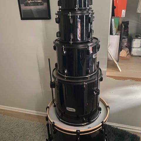 Jeg selger et fint pearl export tromme sett av 9 lags bjørk. Det består av 4 trommer. Settet funker fint til studio bruk og er ganske lett å stemme riktig.