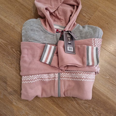Kjempe fin og varm onepiece i Rosa og hvit farge. Str XS.