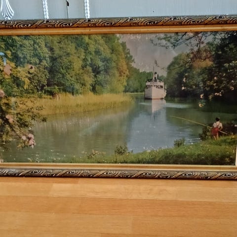 Akvarell- trykk. Store bilder i gullramme.