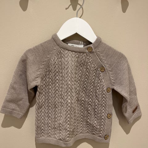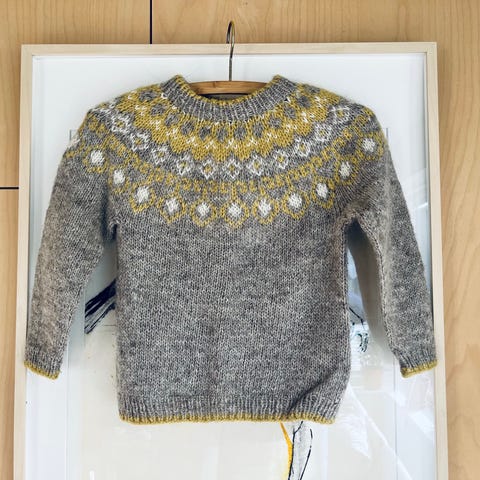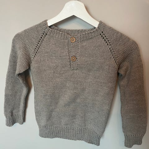 Flott hjemmestrikket (på maskin) genser i ull, lite brukt da han vokste ur den altfor fort!