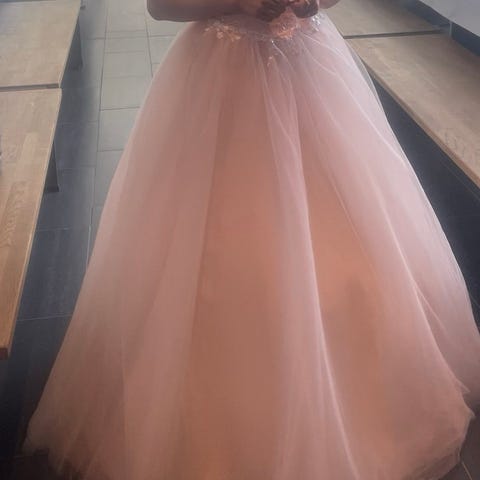 Leier ut denne nydelige Alexandra Ritzi ballkjolen, som er lyserosa og med glitter. Den er kjøpt i november 2024. Kjolen er i størrelse XS, og er justerbar med knytting på ryggen (XXS til M). Kjolen kan passe alle rundt 168-177 avhengig av sko.