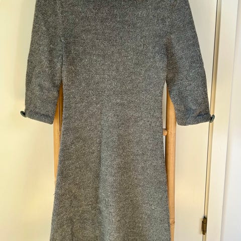Veldig fin og stilig kjole i ull med høy hals i str S selges for 200 , Pent brukt to ganger. Beige og svart farge.