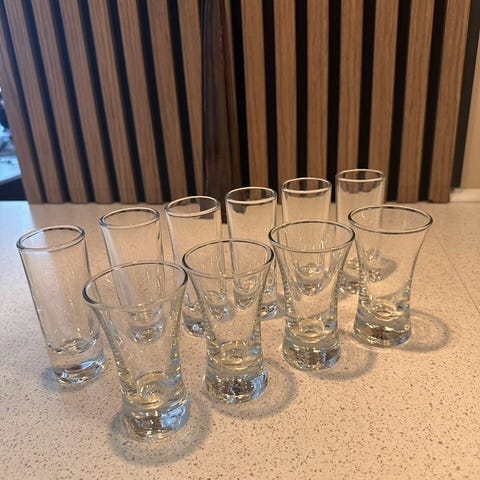 Åtte shotteglass.