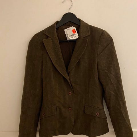 Pent brukt genser fra Filippa K. Bomull og ull. Kommet noen svake misfarginger/flekker som ikke er prøvd å få bort- selges derfor billig. På innsiden av halsen og på arm og foran nederst. Ellers mye bruk igjen.