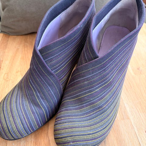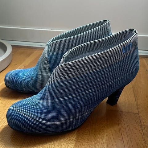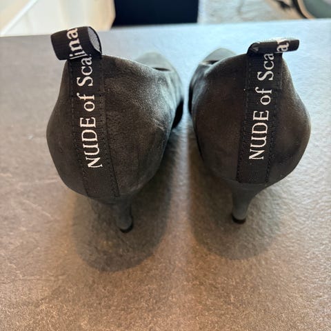 Nude sine flotte sko. De ble kjøpt for store og bare vært «på prøve» hjemme og blitt stående. . Skoen er skinn innvendig og utvendig er spesial designet vevd elastikk. Hæl høyde 7 cm.