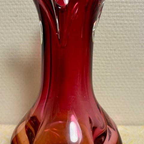 Utrolig vakker tung Krystall vase i nydelige rosa og lilla toner. Høyde ca 22 cm