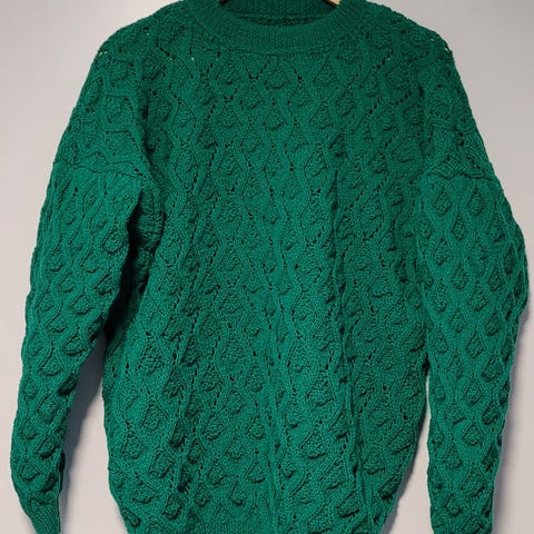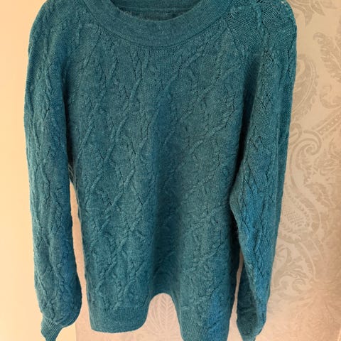 Hjemmestrikket Ull genser blå/ turkis i str. L selges. Hurtig avgjørelse. Må hentes.