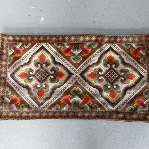 Maskinbrodert og med frynser.
