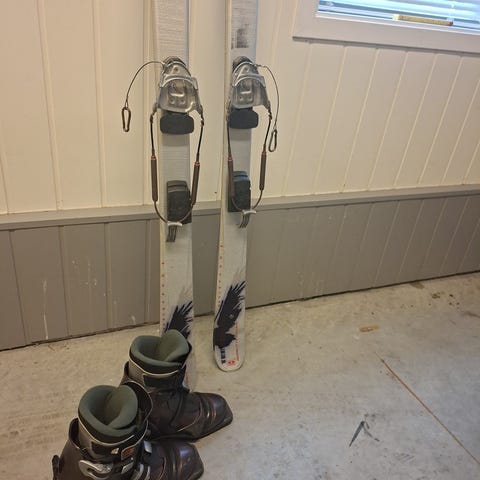 Tua telemarkski 187cm med Riva bindinger. Brukt i bakke og på toppturer. Old school. 💜