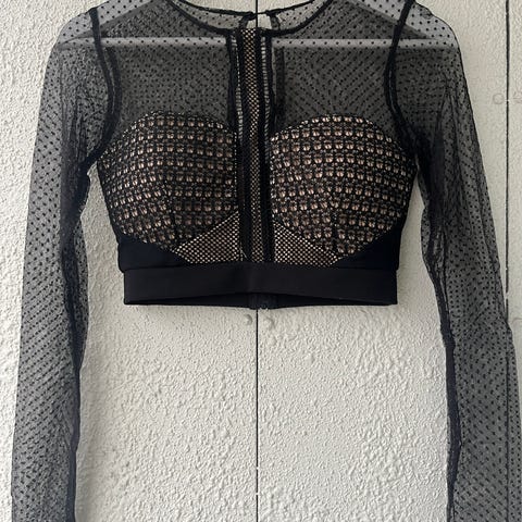 genser med mesh på ermene. med glidelås bak. med brystkopper XS-S