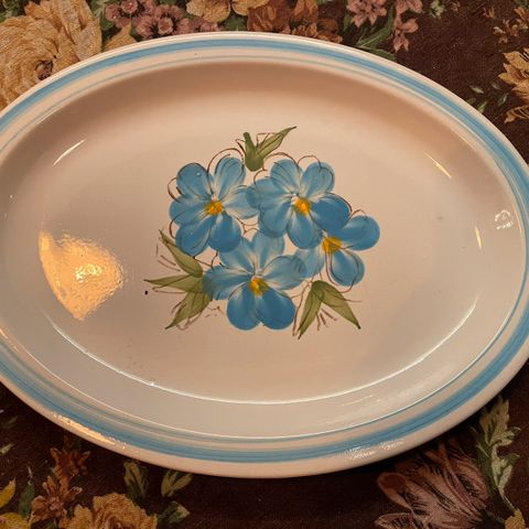 Retro fin skål/ fat 34 cm i diameter og høyde ca 6 cm. Merke under ser ut som AVSTRIA evt AUSTRIA. De to første bildene er tatt i dagslys. Resten i lampelys ( fargen er litt misvisende gul). Ikke funnet noe lignende på Finn. Selges NY PRIS 160 kr. Kan hentes på Lambertseter eller sendes