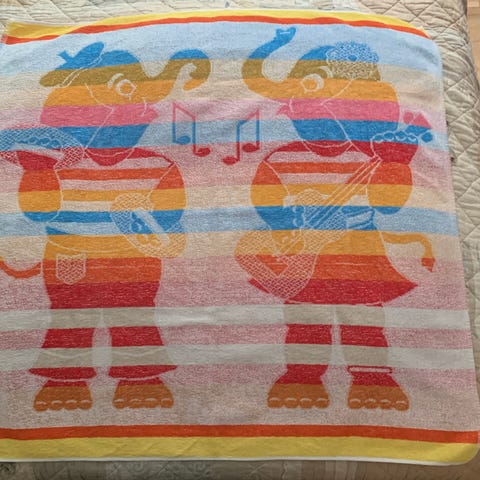 Fint, gammelt og helt håndkle. Ensfarget hvitt på baksida. Paradise Collection - made in Brazil. Fortsatt mye bruk. 75x140cm. Selges for kr 120,- + frakt