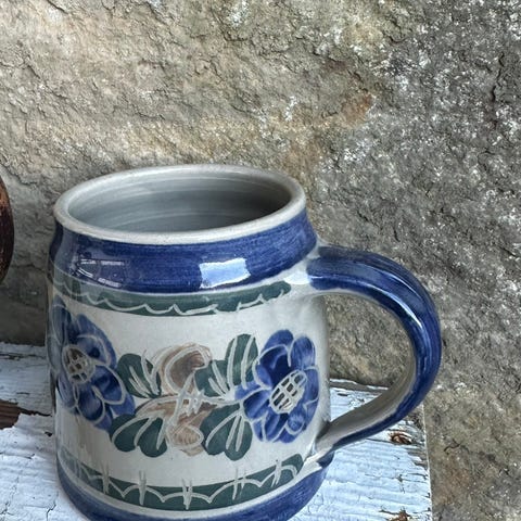 Høyde krus: litt over 7,5 cm og diameter oppe: ca 6 cm.